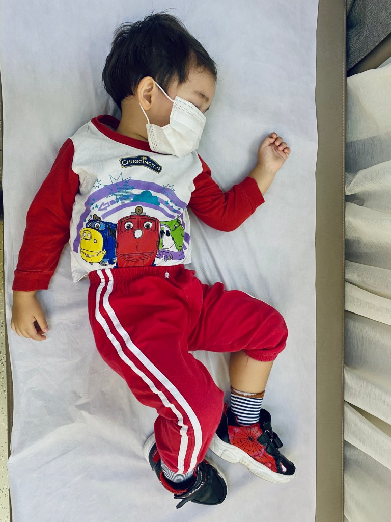 The doctor was confident that the little one was well enough to recover on his own. His dozing off was a good sign – his body was trying to recover as he slept. Thankfully his temperature was well under 37.5deg, the threshold for whether they would consider other possibilities, including Covid.