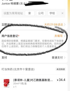 And as luck would have it, I realised quickly that the two key drugs I stupidly forgot to pack, were child Panadol, and oil for stomach wind. Here’s where China’s medicine logistics is useful, but limited. I went on the trusty Meituan delivery app and tried to order drugs online. This is possible now, especially thanks to Covid. Highly efficient, but also highly adminstrative, I quickly realised. In order to proceed with payment, I had to input my personal details, and of course, foreigners’ ID don’t work, again.