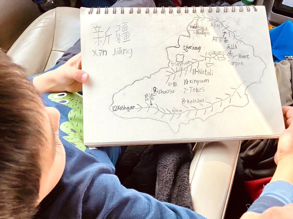 For the children in particular, China is their universe. They live, eat, breathe and grow in this society that will inadvertently shape their view of the world. This trip in Xinjiang has especially opened up the eyes of our six-year old, who soaks up the sights, and channels it into his drawings.